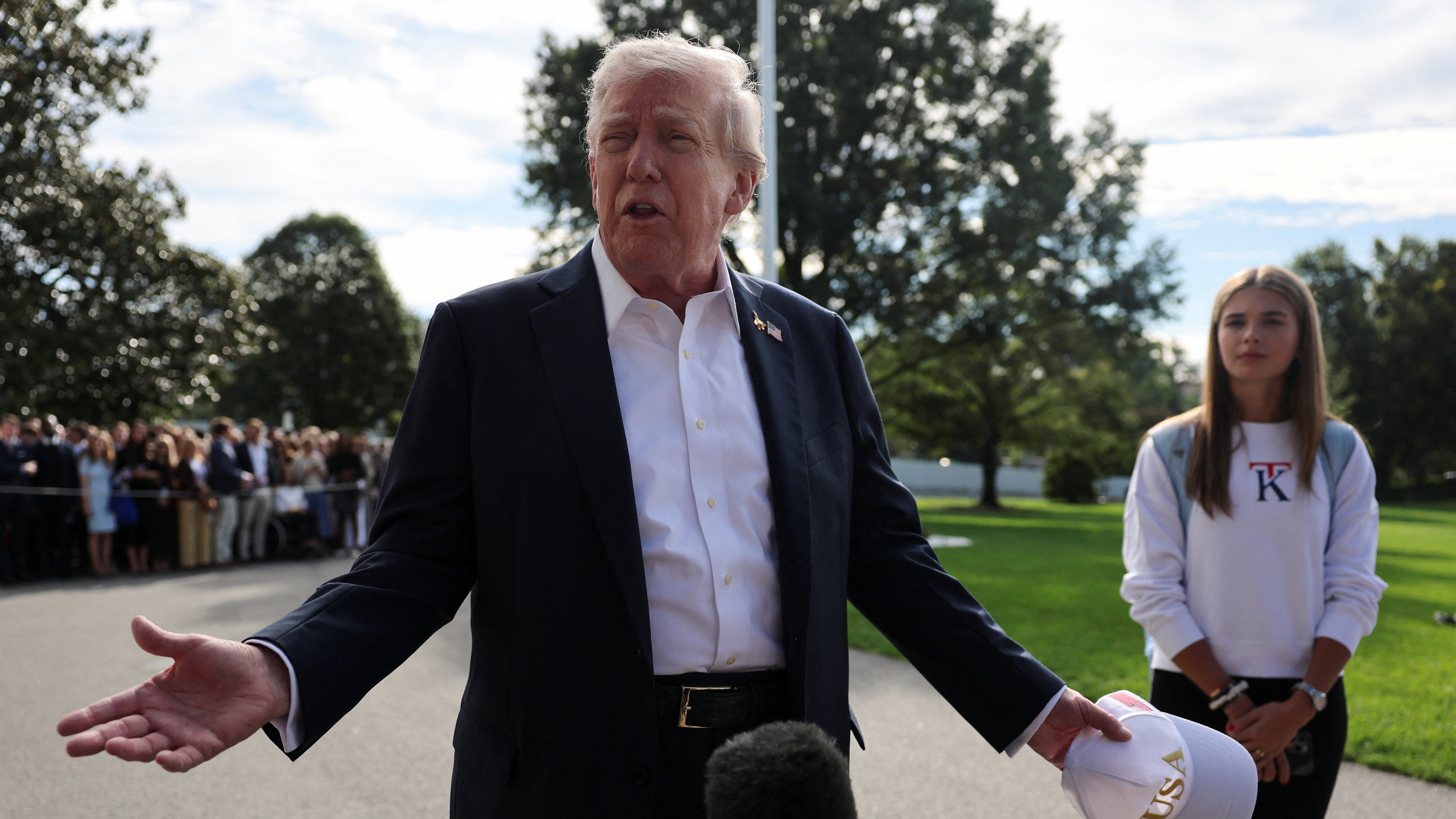 U.S. President Donald J. Trump, joined by his eldest grandchild Kai Trump, spoke to the press prior to traveling to the Ryder Cup on Sept. 26, 2025.